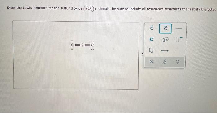 A singly bonded oxygen would have 3 unshared electron pairs while a doubly bonded oxygen would. Be sure to include alli resonance structures that satisfy the octet rule il resonance structures that satisfy the octet rule. Sulfur dioxide appears as a colorless gas with a choking or suffocating odor. Hoffman and vanderwerf, 1946 hoffman, k.r.; More on the dot structure for sulfur dioxide.